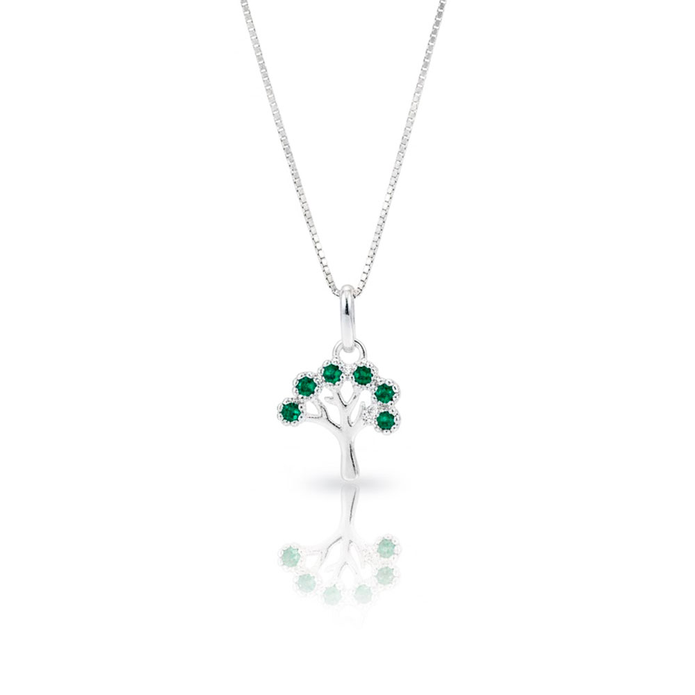 Colar de Prata Àrvore da Vida Cravejado Zircônias Verde Corrente Veneziana Tradicional V12