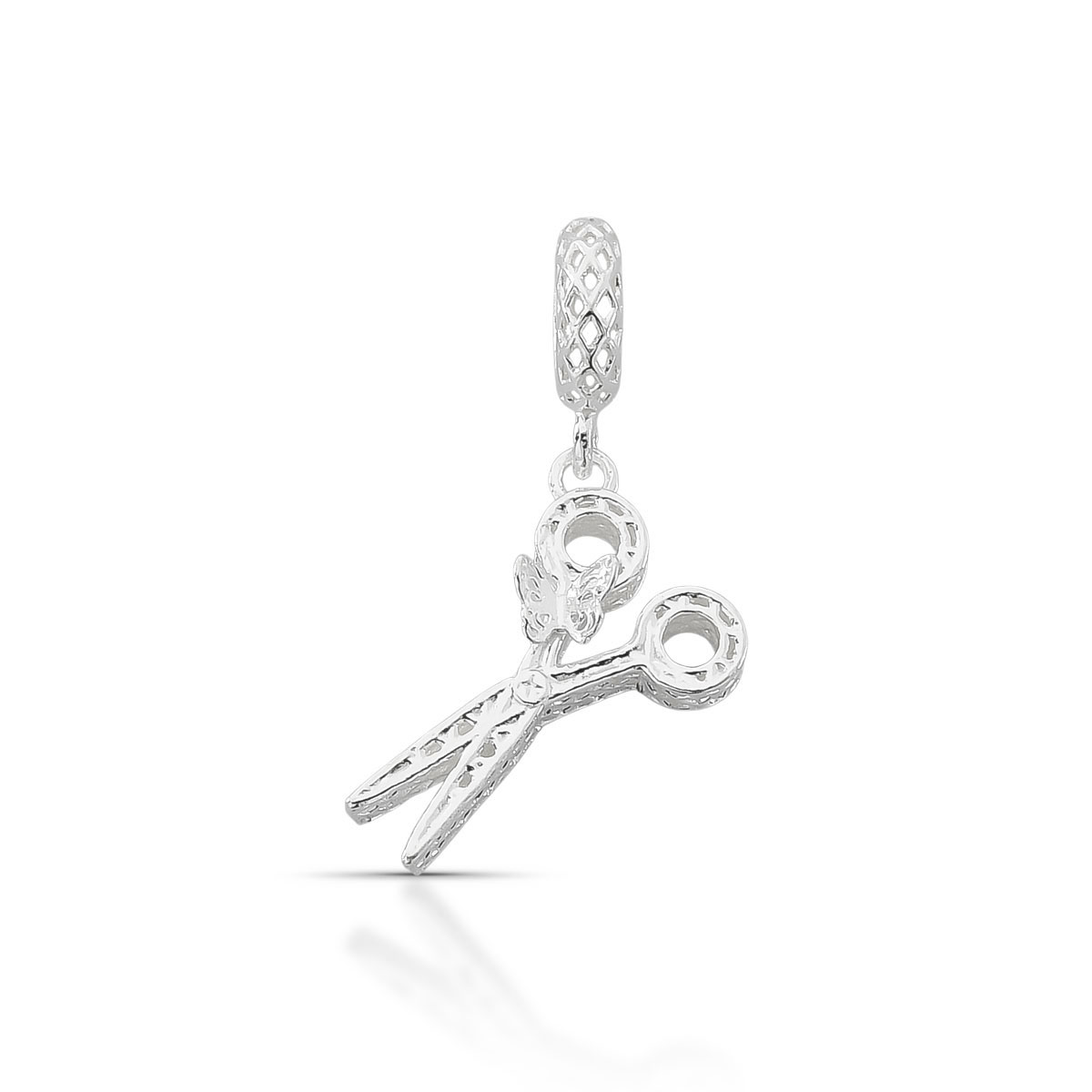 Berloque de Prata Tesoura e Borboleta Renda Italiana