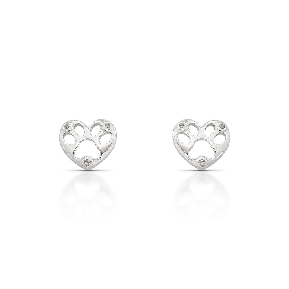 Brinco de Prata Coração Patinha Vazado com Zircônias