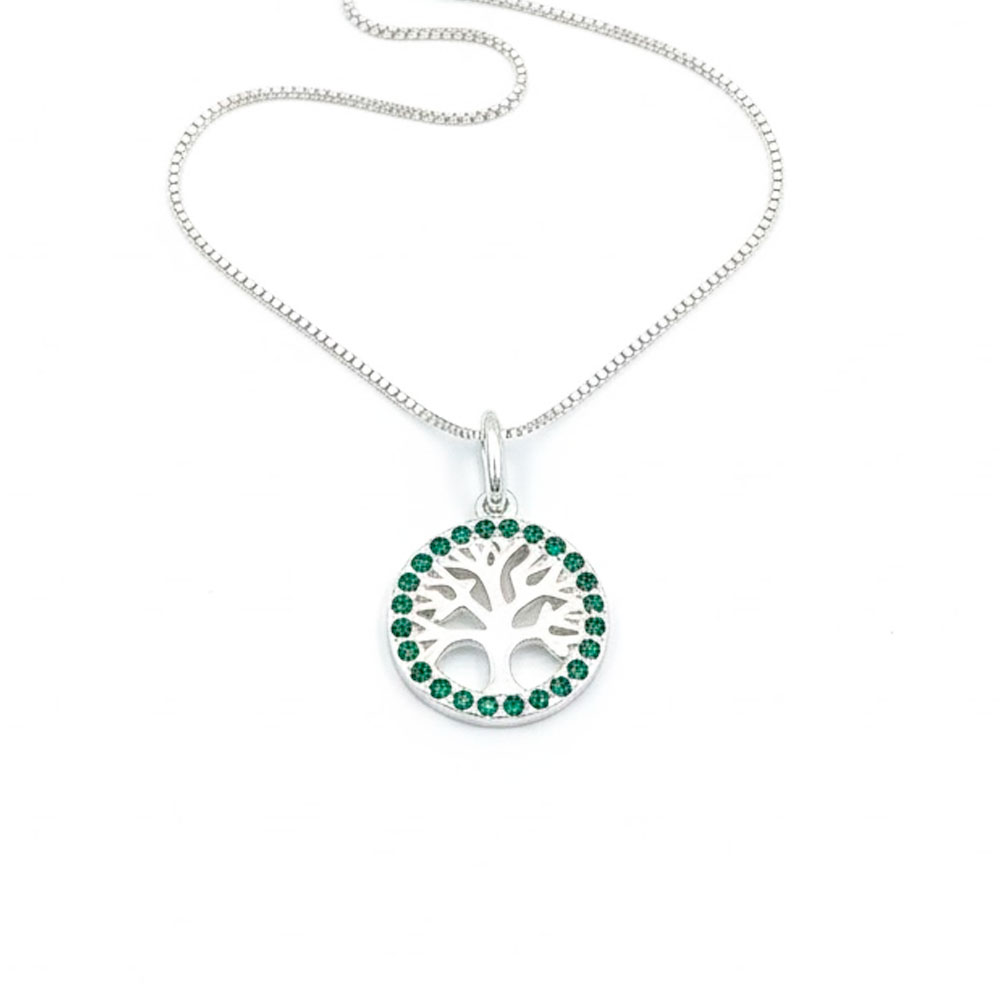 Colar de Prata Àrvore da Vida Cravejado Zircônias Verde Corrente Veneziana Tradicional V12