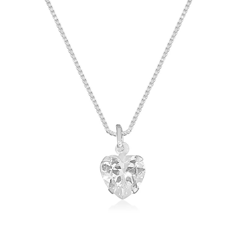 Colar de Prata Ponto de Luz Coração Corrente Veneziana Tradicional V12
