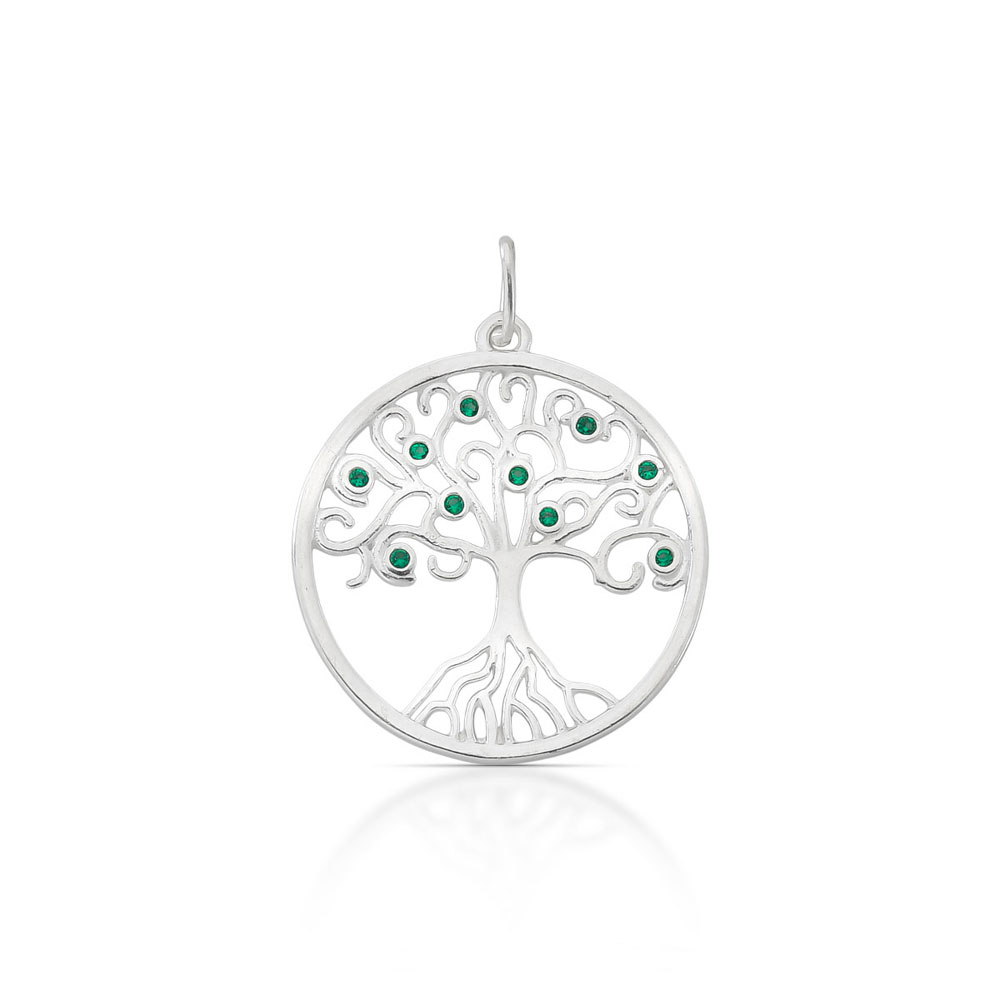 Pingente de Prata Árvore da Vida Vazado com Zircônias Verdes