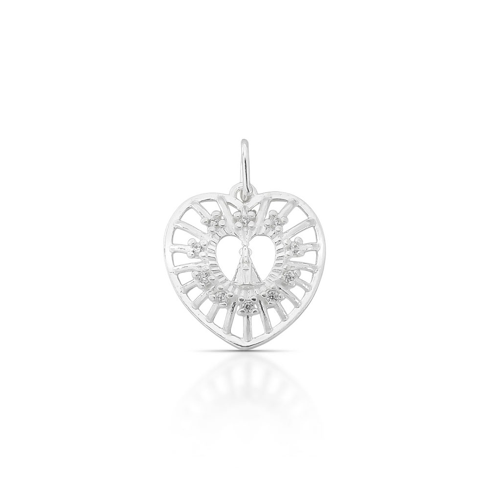 Pingente de Prata Coração Nossa Senhora Aparecida com Zircônias